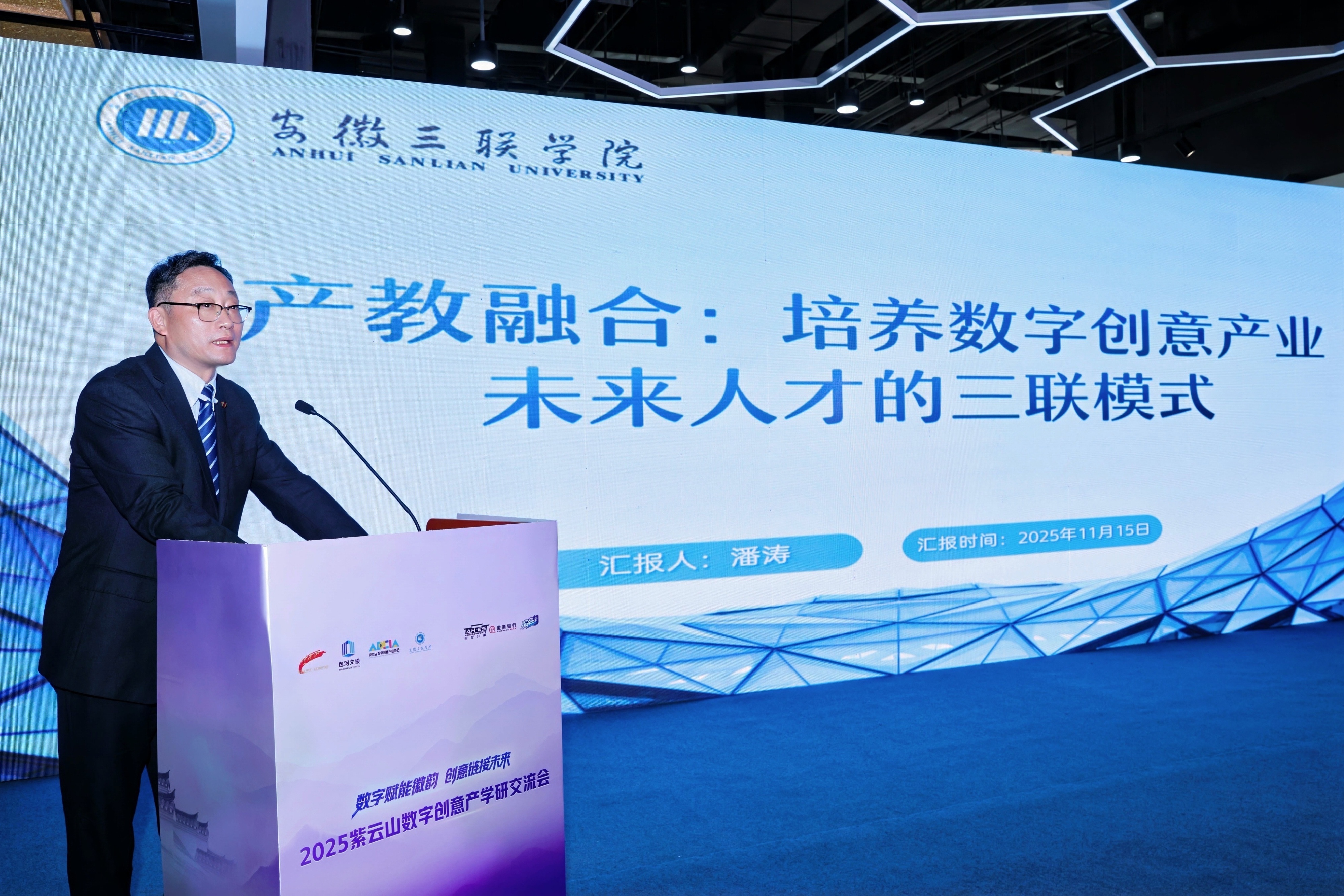 15日下午,由安徽三联学院参与主办的2025紫云山数字创意产学研交流会(论坛)在紫云山文化创意产业园成功召开。会上,副校长、数字创意现代产业学院院长潘涛以《产教融合:培养数字创意产业未来人才的三联模式》为题作主题报告,系统介绍了学校在校企协同、项目驱动、工作室制等方面的探索与成效,随后,安徽三联学院与合肥包河文广产业投资有限公司举行了校企共建“数字动漫产学研基地”授牌仪式,进一步拓展了校外实训与项目合作平台。