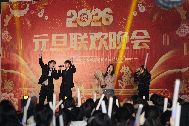 12月25日晚,安徽三联学院数字创意现代产业学院在大学生活动中心举办2026年“以梦为马·不负韶华”元旦文艺晚会。学院领导、师生代表等300余人欢聚一堂,辞旧迎新,共赴青春盛宴。本次晚会也是学院“创艺联心”党建品牌系列活动之一,旨在以艺术凝聚人心、以创意激发活力,推动党建工作与育人实践深度融合。